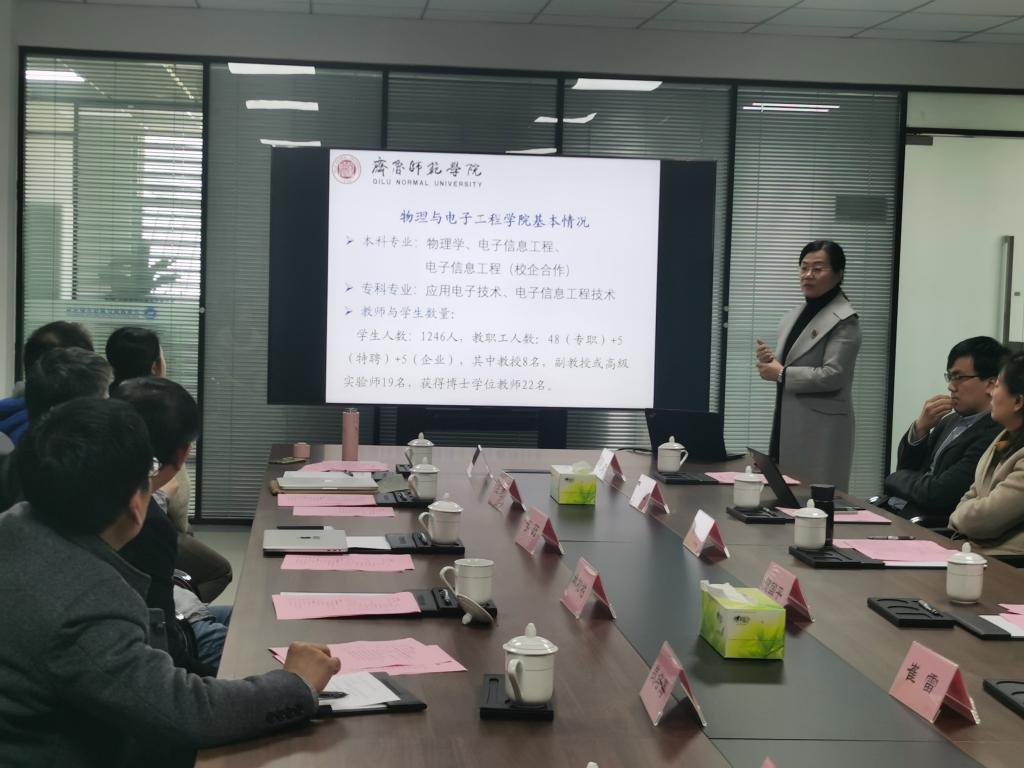 张洁向与会人员介绍了物理与电子工程学院基本情况,对天体物理中心、FAST数据处理中心的发展规划进行了说明。