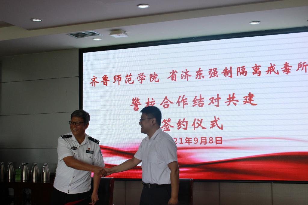“警校共建”是全面贯彻党的教育方针,加强综合德育建设的需要,此次与省济东戒毒所开展合作交流是我校进一步加强大学生思政教育工作的有益探索,也是学校“我为师生办实事”的一项举措。结对共建充分显示了我校作为“师范性、地方性、应用型”高校,服务地方经济和社会发展的职能,也是我校与省济东强制隔离戒毒所共同为禁毒、戒毒工作做出的积极实践探索,双方通过优势互补、资源共享,为法制进校园建设和大学生法制教育,创建平安无毒净土的校园环境发挥重要作用。