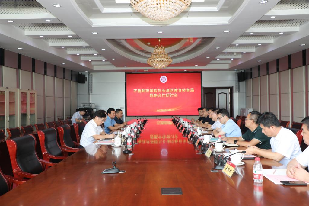 8月17日,在章丘校区图书馆四楼会议室,齐鲁师范学院与长清区教育体育局召开战略合作研讨会。
