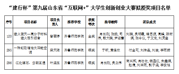 10月8日,根据山东省教育厅公布的《“建行杯”第九届山东省“互联网+”大学生创新创业大赛拟授奖名单》,我校荣获省赛金奖1项、铜奖2项,这是我校在此项赛事中首次获得省赛奖牌,创造了学校在该项赛事的最好成绩。