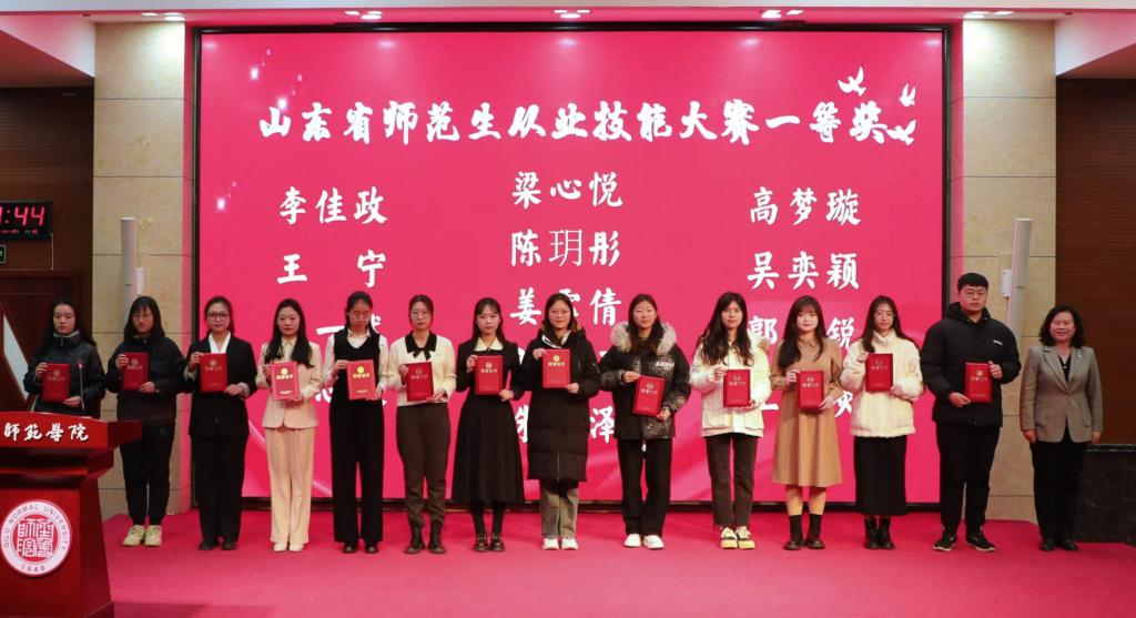 大会现场,孙正宣读了《齐鲁师范学院关于表彰2023年大学生竞赛获奖学生团队的决定》和《齐鲁师范学院大学生创新创业导师名单》,并为全国高校商业精英挑战赛一等奖、二等奖20名获奖团队负责人颁奖。郑秀文、赵敏分别为第九届山东省“互联网+”大学生创新创业大赛金奖获奖团队负责人、山东省师范生从业技能大赛一等奖获得者颁奖。