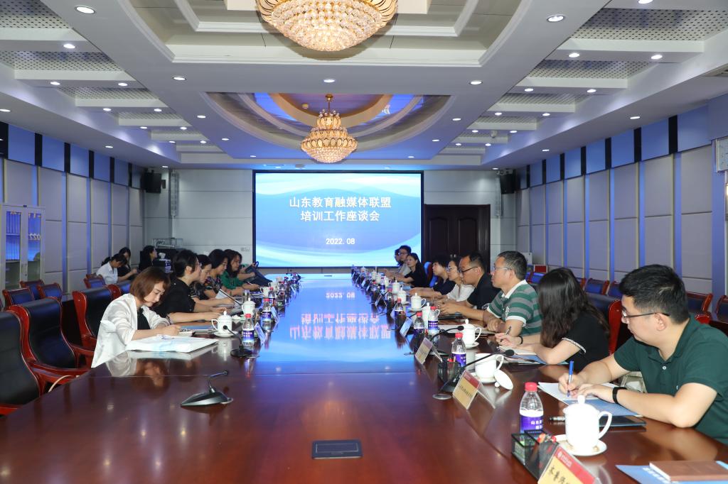 8月19日上午,山东教育融媒体联盟培训工作座谈会在齐鲁师范学院章丘校区图书馆四楼会议室召开。齐鲁师范学院党委副书记赵敏、山东教育电视台融创中心副主任何蕾、山东教育电视台融创中心编导王红岩、山东教育电视台融创中心业务主管刘彬、驻济东部片区高校党委宣传部有关负责同志参加会议。座谈会由齐鲁师范学院党委宣传部部长孙磊主持。