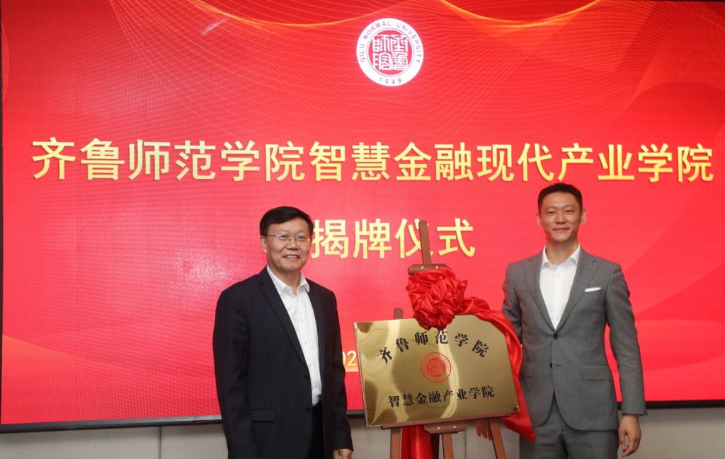 随后,林松柏和房健共同为齐鲁师范学院智慧金融现代产业学院揭牌。