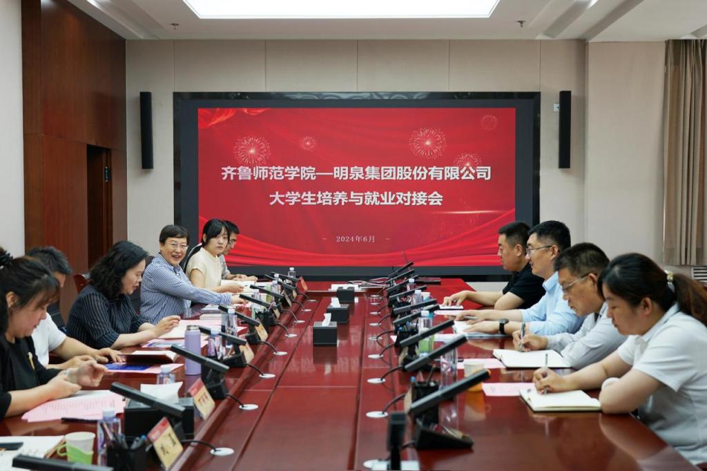 为深化校企深层次合作,促进大学生高质量就业,6月6日,齐鲁师范学院与明泉集团股份有限公司(以下简称明泉集团)共同举办大学生培养与就业对接会。明泉集团监事、人力资源中心主任刘洋,齐鲁师范学院党委副书记赵敏,及相关部门负责人参加会议。活动由学校学生工作部(处)长李玮主持。