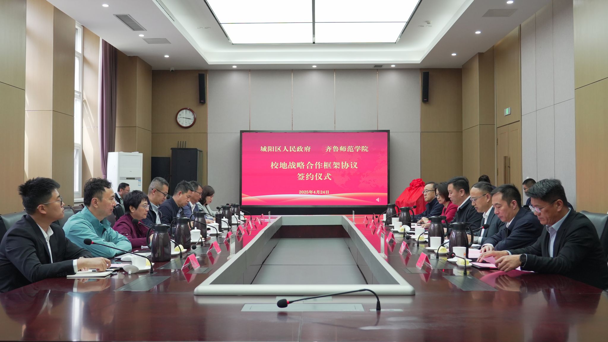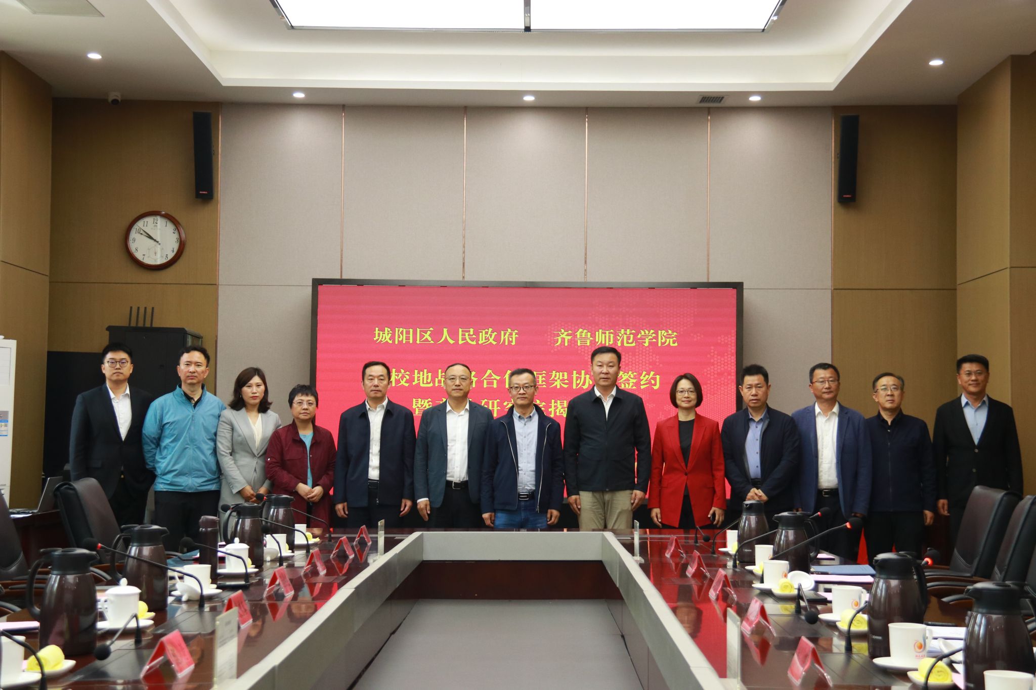 双方签署了校地战略合作框架协议,共同为“齐鲁师范学院青岛产业研究院”揭牌。双方还就具体合作项目的实施细节、推进步骤进行了深入探讨。未来,双方将围绕基础教育五级教师发展新体系建设、中等职业教育转型发展、文旅融合和文化两创等重点领域,制定详细的合作方案,明确责任分工,确保合作取得实效。