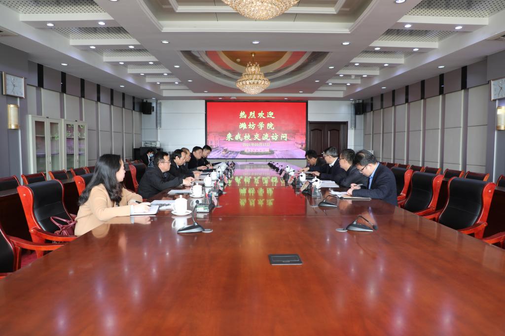 3月17日,潍坊学院党委委员、副校长丁子信一行来我校交流访问。党委副书记、校长林松柏会见了访问团一行。教务处、科研处、人工智能产业学院负责同志参加了座谈。