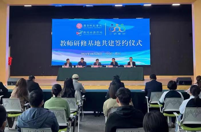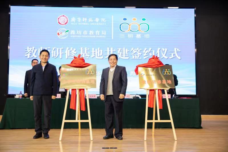 为探索建立新时代教师培训新机制和推进产学研协同创新,10月26日上午,齐鲁师范学院、潍坊市教育局教师研修基地与大学生研创基地揭牌仪式在潍坊市文华教育集团举行。