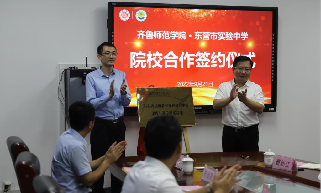 9月21日下午,齐鲁师范学院与东营市实验中学举行合作共建签约仪式暨“齐鲁师范学院山东省基础教育课程研究中心课程与教学研究基地”“齐鲁师范学院教学实践基地”揭牌仪式,仪式在东营市实验中学运河路校区举行。