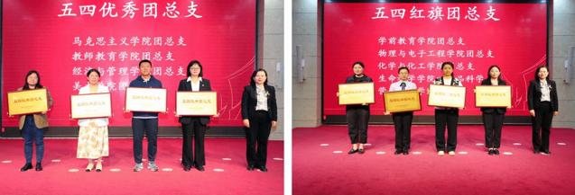 大会宣读了《关于表彰2023年度五四红旗团总支、五四优秀团总支、五四红旗团支部、优秀共青团员、优秀共青团干部的决定》。其中,学前教育学院、物理与电子工程学院、化学与化工学院、生命科学学院被授予“五四红旗团总支”称号;马克思主义学院、教师教育学院、经济与管理学院、美术学院被授予“五四优秀团总支”称号。现场为荣获2023年度青年志愿者优秀个人、第十四届“挑战杯”大学生创业计划竞赛校赛金银铜奖、“主题团日”活动十佳优秀案例、“我为同学做实事”实践活动十佳优秀案例等项目的集体和个人颁发荣誉证书。