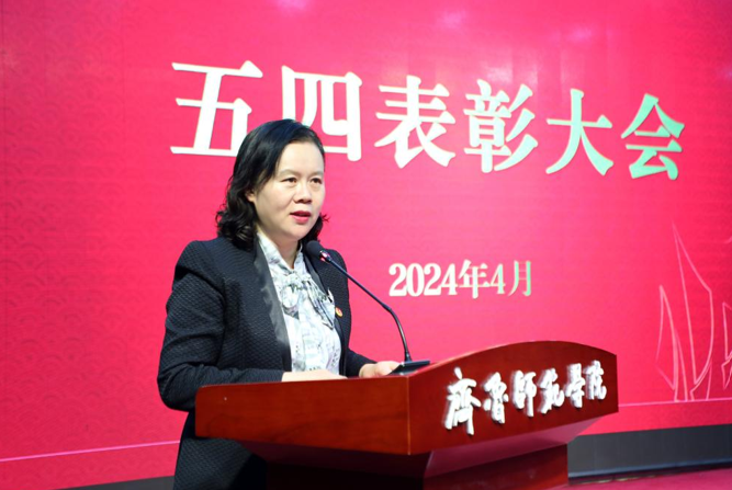 为深入学习贯彻习近平总书记在同团中央新一届领导班子集体谈话时的重要讲话精神,赓续红色血脉,彰显青年担当,充分激发广大团组织和团员团干部在中国式现代化建设中挺膺担当的奋进精神,4月25日,齐鲁师范学院2024年“五四”表彰大会在章丘校区第一学术报告厅举行。学校党委副书记赵敏,党委委员、党委宣传部部长孙磊出席会议。党委组织部,党委宣传部,学生工作部(处),教务处,合作发展办公室、校友工作办公室(创新创业学院)等部门负责人,各学院党委书记、副书记,团总支书记及团员青年代表共同参加会议。