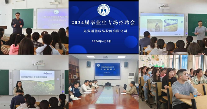 为落实学校关于毕业生就业工作的相关要求,扎实推进2024届毕业生就业工作,助力帮扶毕业生拓宽就业渠道,实现高效、精准、高质量就业,4月份,化学与化工学院召开专场招聘活动三场,分别邀请克劳丽化妆品股份有限公司(苏州)(以下简称“克劳丽”)、山东润丰化工股份有限公司(以下简称“润丰化工”)、山东山东国茂医药科技有限公司(以下简称“国贸医药”)宣讲。企业代表、校友代表、学院领导及相关专业负责人、毕业班辅导员及2024届部分本专科毕业生参加活动。