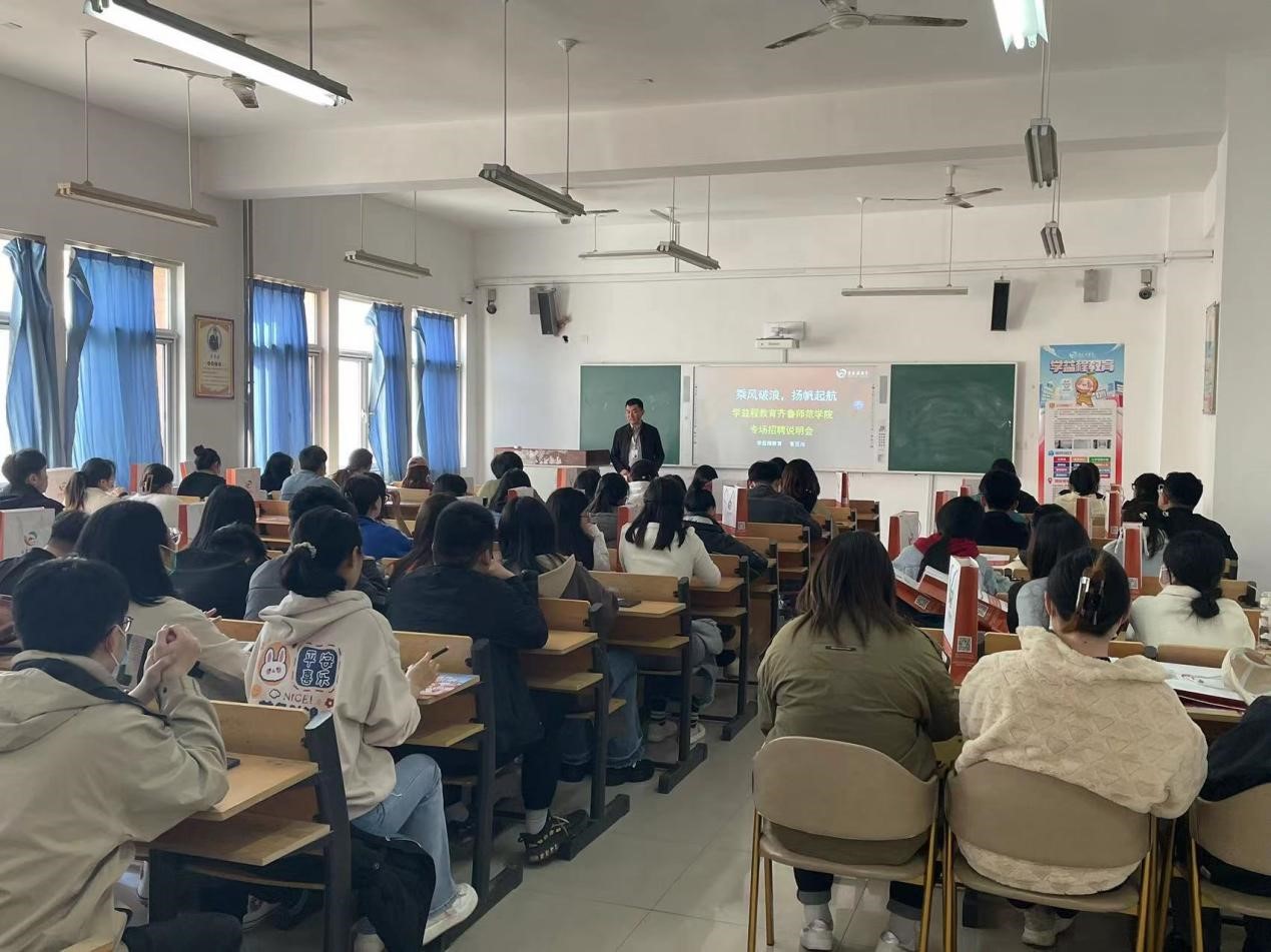 为进一步贯彻落实党中央、国务院“稳就业”“保就业”决策部署,扎实推进学校促就业“十大行动”,3月14日,我校创新采用“1+1+X”服务模式开展招聘宣讲会,即1名用人单位负责人、1名学生就业大使和多位对口专业辅导员共同保障宣讲会开展实效。此次宣讲会由学益智教育教学服务中心负责人张百川主讲,招聘岗位相关专业辅导员以及66名2023届毕业生参加。