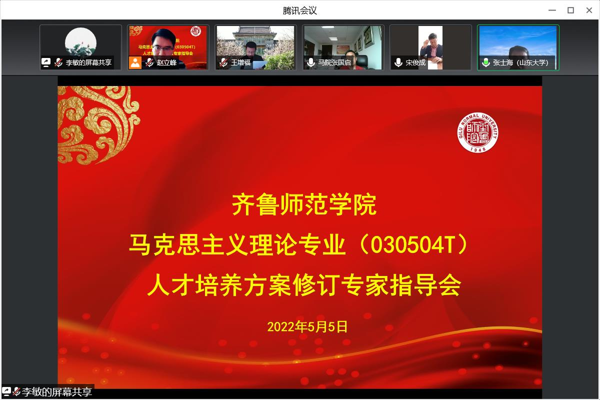 值5月5日马克思诞辰204周年之际,马克思主义学院邀请省内外专家开展马克思主义理论专业建设和人才培养质量提升指导会,并着重就我校马克思主义理论专业(030504T)人才培养方案修订进行了指导交流。全国重点马克思主义学院、山东大学马克思主义学院院长张士海教授,全国重点马克思主义学院、山东师范大学马克思主义学院院长王增福教授,全国重点马克思主义学院、贵州师范大学马克思主义学院副院长宋俊成教授,华南理工大学马克思主义学院副院长张国启教授参加指导活动。马克思主义学院正教授、马克思主义理论教研部全体教师参加会议,会议由马克思主义学院院长赵立峰教授主持。