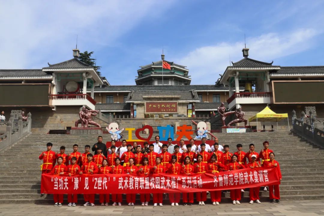 为贯彻中华武术全球化发展战略方针,6月19日上午,“超越自我•共同发展”齐鲁师范学院武术全球化推广系列活动-——齐鲁师范学院武术集训营,在河南嵩山少林寺武术馆演武厅开营,我校3名老师和33名大学生参加开营仪式。