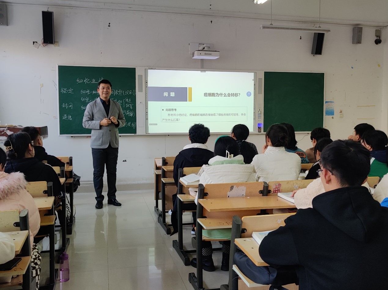 朱睿斌老师是山东省本科教育课程思政示范课程团队成员,其主持的《细胞生物学》课程获批山东省一流本科线下课程,本次授课内容是《细胞生物学》课程的“细胞连接”部分。朱睿斌老师以“癌细胞为什么会转移?”为主线,在教学过程中运用案例教学、启发式教学和实验讨论等多种教学方法,引导学生分析、讨论细胞连接的种类、功能和分子机制,教学目标明确,教学内容重难点突出,体现了“金课”的两性一度标准。课堂上恰当融入课程思政,体现了知识传授、能力培养和价值塑造的有机融合。