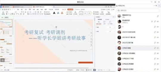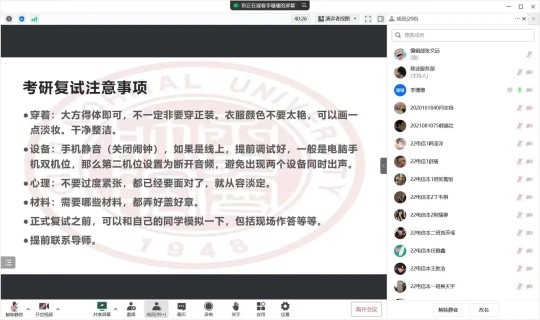 为扎实推进学院2023届学生考研指导工作,进一步提升人才培养质量,为考研学生提供经验和帮助、解决困惑,助力考研学子成功上岸,并充分发挥优秀毕业生传帮带作用。3月13日晚,物理与电子工程学院举办2023届考研复试调剂线上经验交流会。会议邀请四位2022届考研成功上岸的毕业生代表进行线上经验分享,与会成员包括2023届考研毕业生以及大学一年级全体同学。本次交流会由辅导员张萌主持。