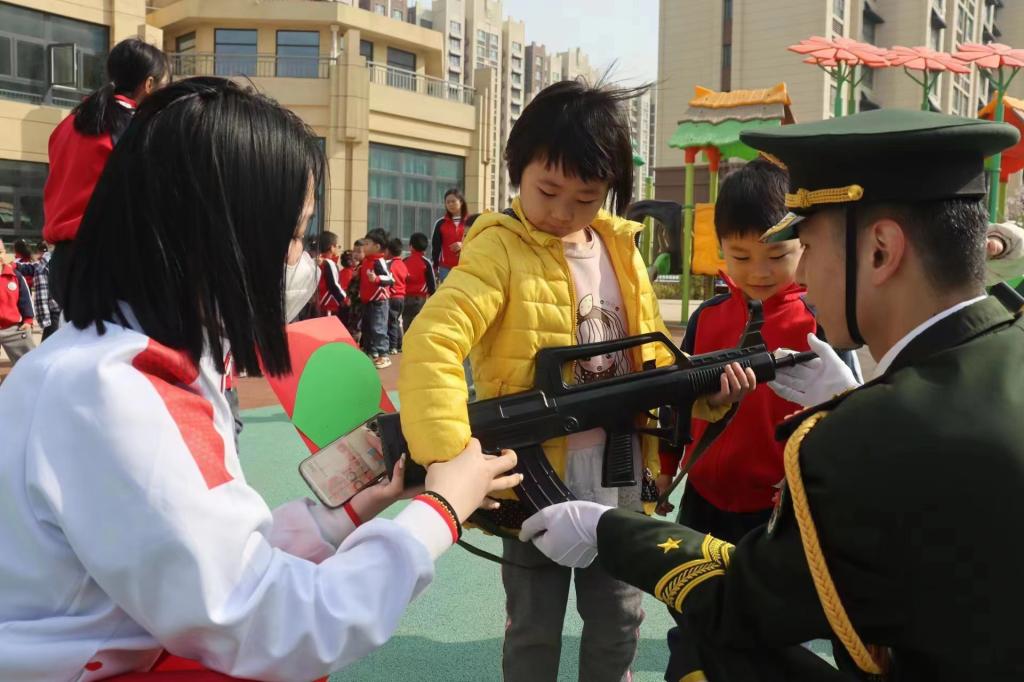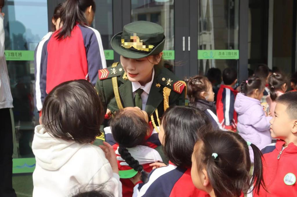 升国旗仪式后,幼儿园小朋友向国旗护卫队队员献上了他们独特的祝福——一张张精美的卡片和一个大大的拥抱。随后,国旗护卫队队员开启了国旗知识小课堂,细心地为幼儿园小朋友讲解中华人民共和国国旗的有关知识,并组织小朋友们进行“队列训练”,示范队列动作。