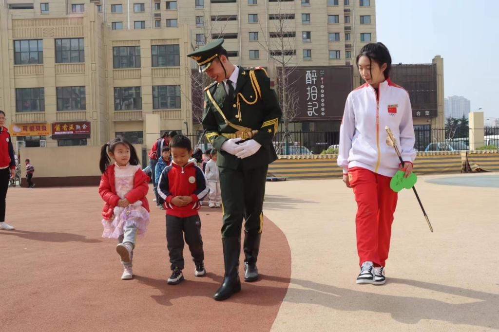 3月20日,学前教育学院与校国旗护卫队,联合学前教育学院实习实践基地——济南市章丘区青未了玉龙山幼儿园开展爱国主义教育主题升旗仪式活动。
