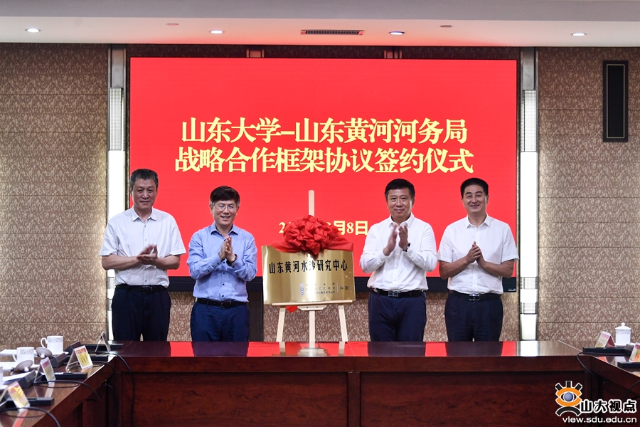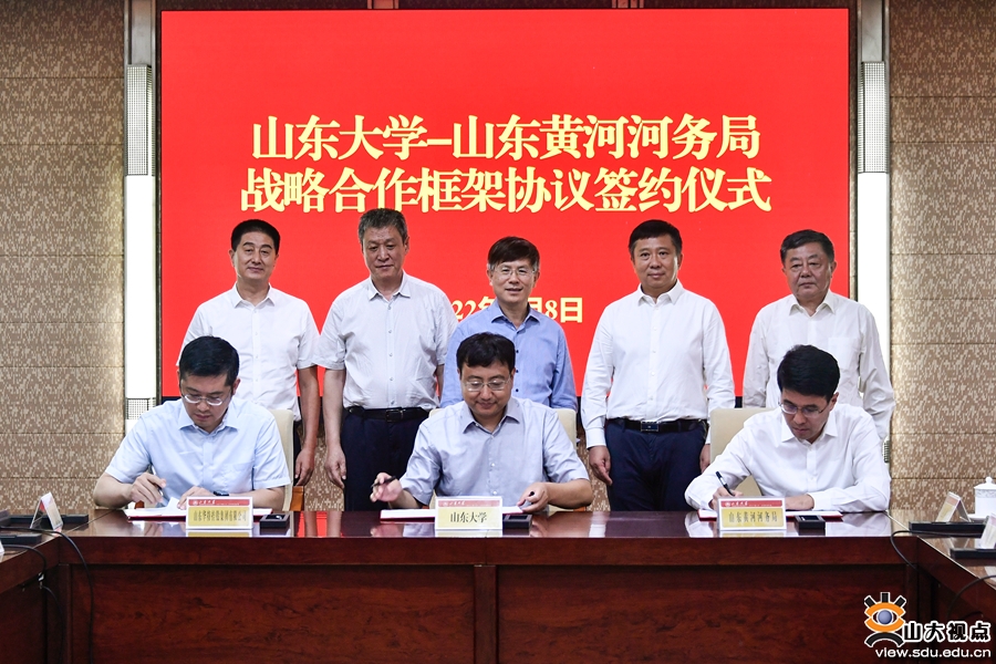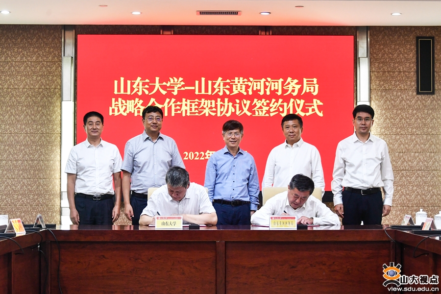 [本站讯]8月8日,山东大学与山东黄河河务局签署战略合作框架协议。山东大学校长、中国工程院院士李术才,山东黄河河务局党组书记、局长李群出席签约仪式并致辞。山东大学常务副校长王琪珑,山东黄河河务局一级巡视员崔节卫,党组成员、副局长尹学辉,山东华特控股集团有限公司党委书记、董事长朱效平出席活动。