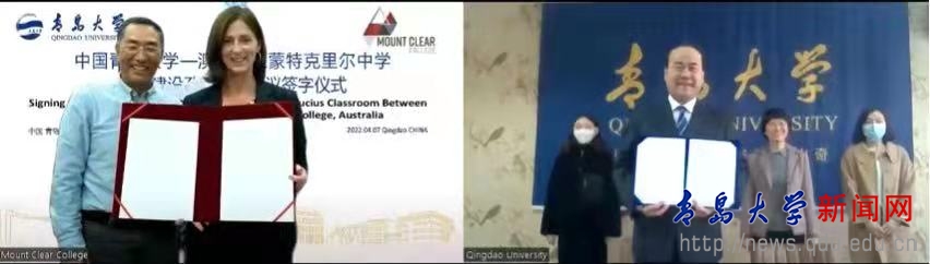 4月7日上午,我校与澳大利亚蒙特克里尔中学(Mount Clear College)共建孔子课堂合作协议签约仪式在线上举行,澳大利亚蒙特克里尔中学校长Lynita Taylor和我校国际交流合作处处长汪运波分别代表双方学校正式签署了合作协议。