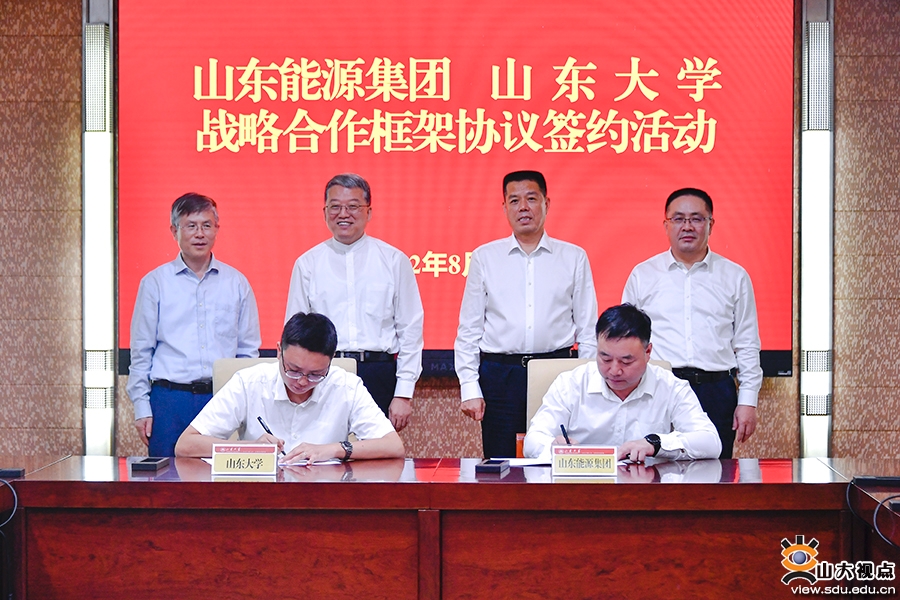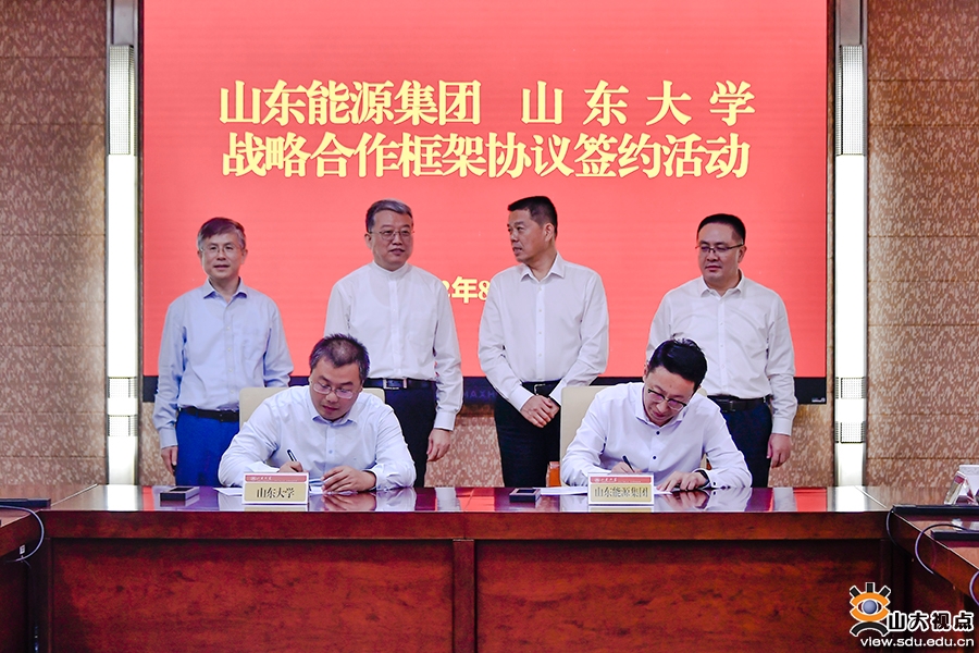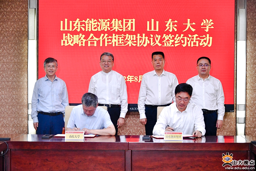 [本站讯]8月31日下午,山东大学与山东能源集团有限公司(以下简称“山东能源集团”)战略合作框架协议签约活动在山东大学中心校区举行。山东大学党委书记郭新立、校长李术才,山东能源集团党委书记、董事长李伟出席活动。山东能源集团总经理张宝才,工会主席岳宝德,副总经理刘健,副总经理、总审计师茹刚,副总经理刘强,总工程师孙希奎,山东大学常务副校长王琪珑、党委副书记王君松参加活动。
