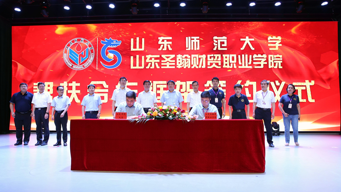 签约仪式上,邢光与姜峤分别代表两校签署了《帮扶合作框架协议》。山东圣翰财贸职业学院8个二级学院与山东师范大学9个二级学院签署了院际《合作共建框架协议》。
