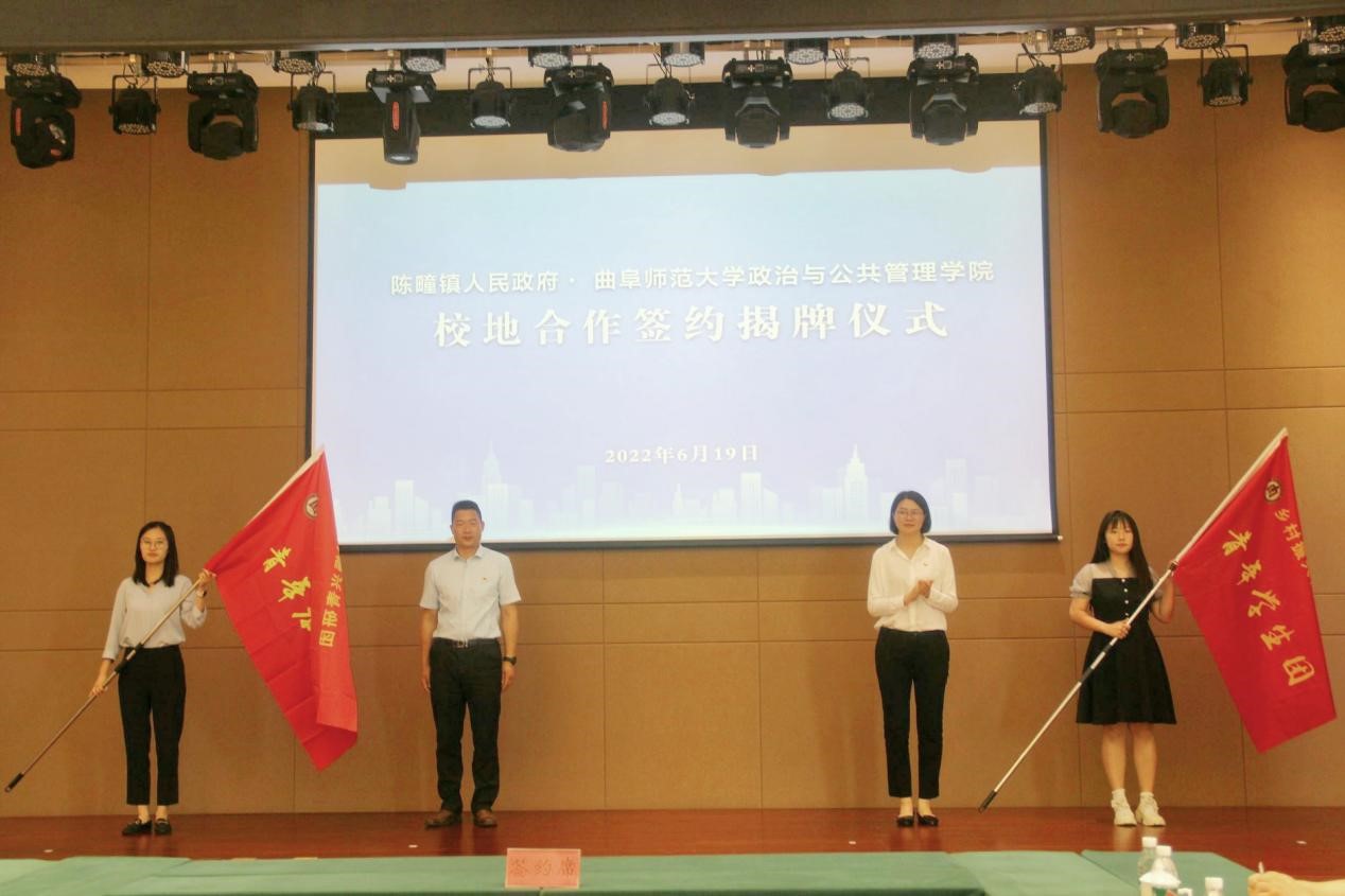 曲阜师大新闻中心讯(通讯员:彭倩倩 摄影:杨宁)为进一步开展校地合作,协同促进产学研融合发展,实现校地资源有效对接,6月19日上午,曲阜师范大学政治与公共管理学院与陈疃镇人民政府于山海路生态科技园区举行校地合作签约揭牌仪式。曲阜师范大学政治与公共管理学院副院长李增元,党委副书记张忠凯,副院长林士俊,东港区委常委、组织部长李满升,陈疃镇党委书记刘兴华,陈疃镇党委副书记、镇长李珊珊,出席签约揭牌仪式。曲阜师范大学政治与公共管理学院部分师生,东港区区财政局、农业农村局、科技局、人社局、检验检测中心负责人,陈疃镇班子成员、各村支部书记,蓝莓协会企业负责人,镇直有关单位负责人参加了活动。