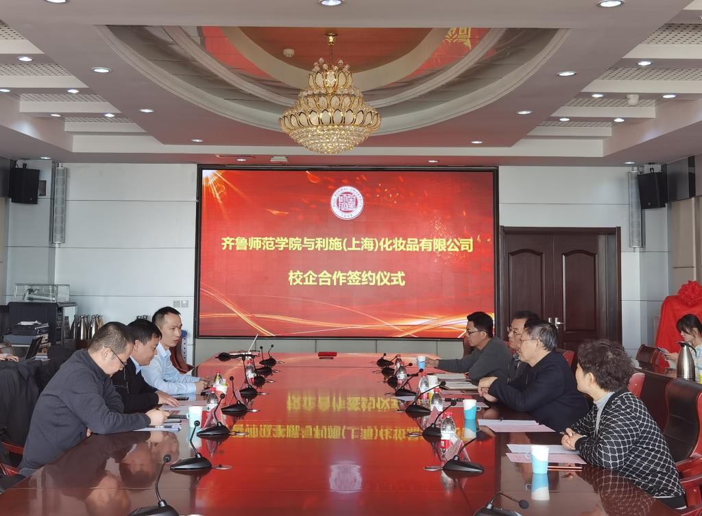 11月24日,齐鲁师范学院与利施(上海)化妆品有限公司的签约仪式在章丘校区图书馆四楼会议室举行。党委副书记、校长林松柏,明水经济技术开发区投资促进部副部长、章丘区生物医药招商专班负责人徐文斌,齐鲁师范学院科研处处长魏培海,化学与化工学院院长曹晓荣,化妆品中心主任骆兴伟,化妆品产业学院筹建办公室主任石聪文,利施(上海)化妆品有限公司总经理王勇,上海优萃生物科技有限公司总经理特助陈建华出席签约仪式。本次签约仪式由骆兴伟主持。