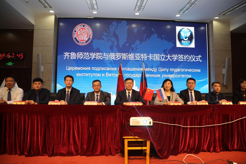 4月11日13时,齐鲁师范学院与俄罗斯维亚特卡国立大学相聚云端,线上共同签署《合作交流框架协议书》与《合作办学基本共识协议书》。校长林松柏分别发表开幕式、闭幕式致辞,教务处、体育学院、国际交流与合作处有关同志参加了签约仪式。