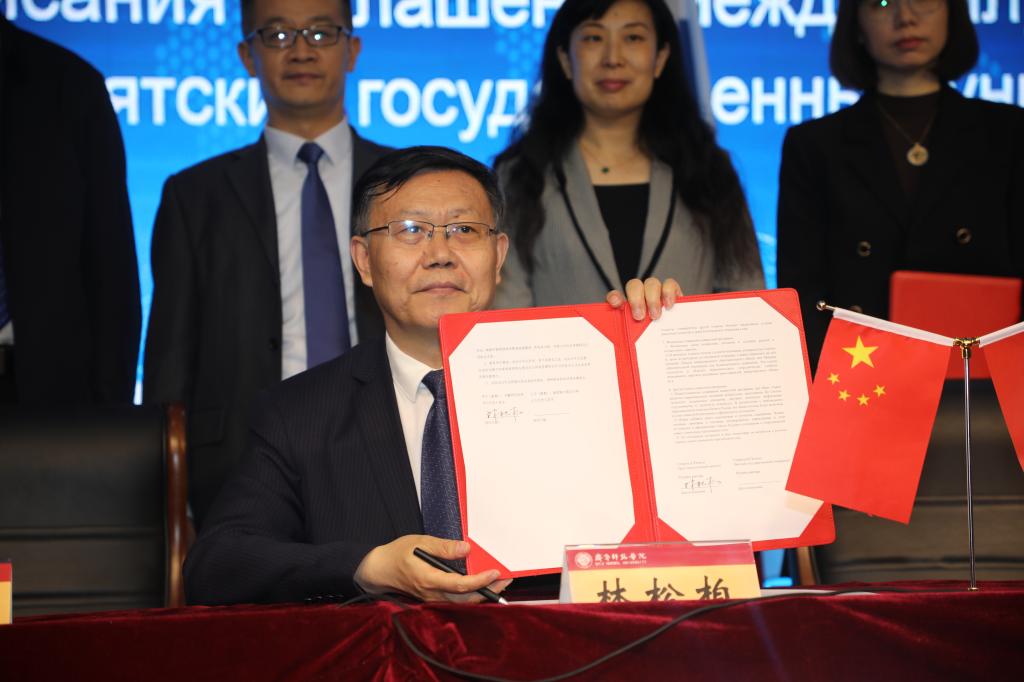 会上,林松柏介绍了我校的办学情况与办学优势,围绕学术交流、师生互访、合作研究及人才联合培养等方面与俄罗斯高校达成了共识,重点就体育专业开展中外合作办学进行了商讨,学校为双方的交流合作提供有力充分的支持与保障。
