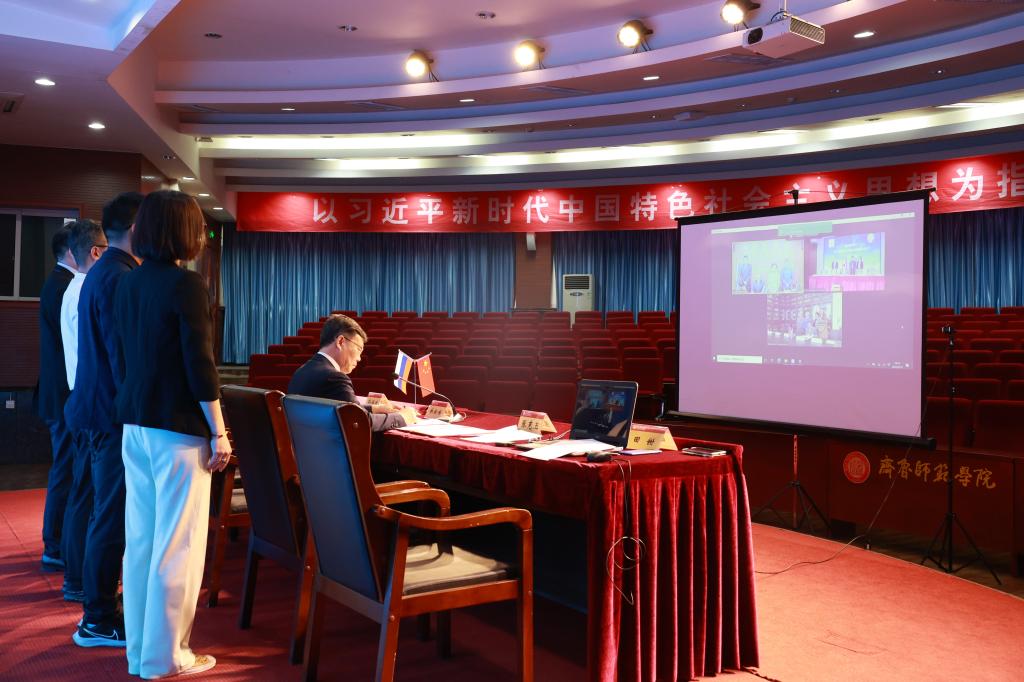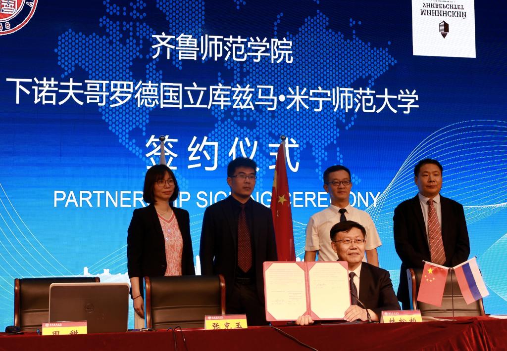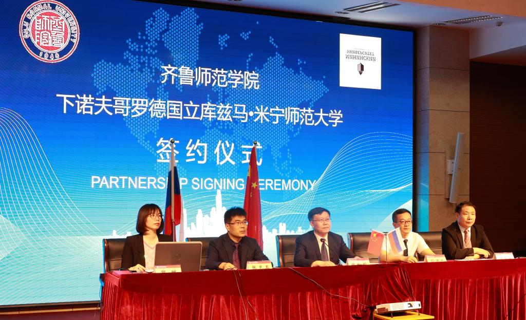 5月20日18时,齐鲁师范学院与俄罗斯下诺夫哥罗德国立库兹马·米宁师范大学(简称米宁大学)召开线上会议,商讨建立校际友好合作关系事宜并举行签约仪式。