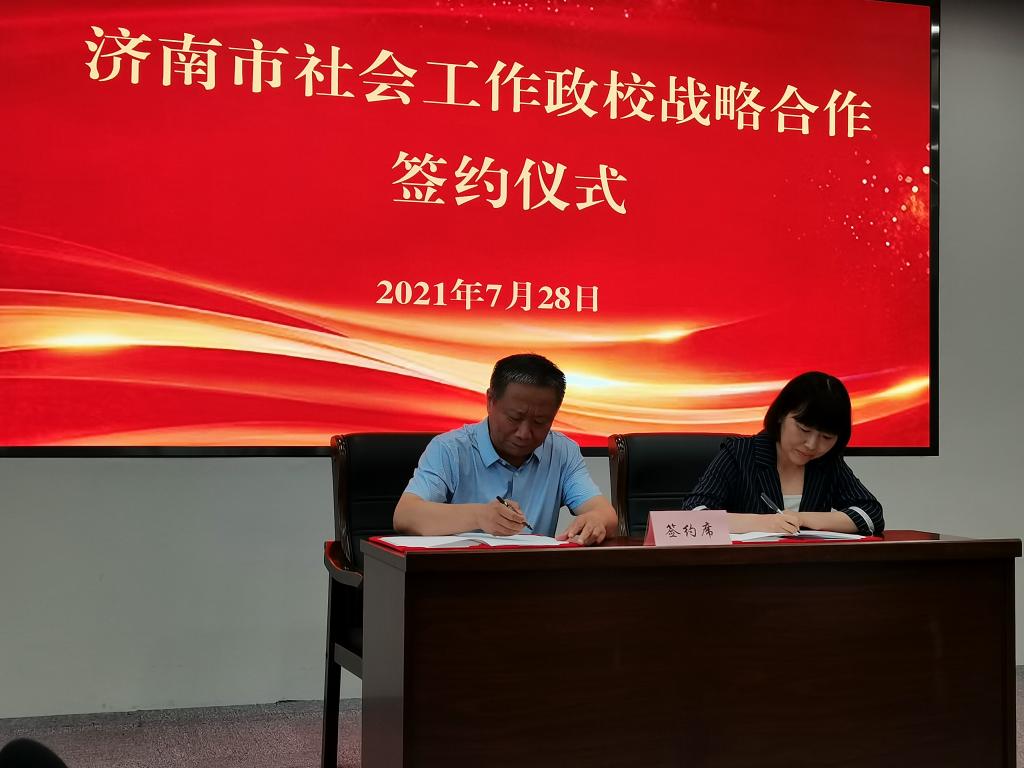 为了进一步加强济南市社会工作的全面发展,加强政校合作,打造省会社会工作服务品牌,7月28日上午,济南市社会工作政校战略合作签约暨社会工作督导专家聘任仪式在济南龙奥大厦举行,济南市民政局与驻济8所高校签署了合作协议,社工专业负责人邱珊副教授作为我校代表参与了签约仪式。