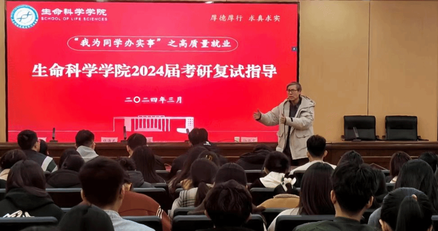 生命科学学院一直高度重视升学就业工作,充分利用学院资源,多措并举、精准施策。本次考研复试指导为学生们传授了实用的复试经验,使学生进一步掌握复试、调剂技巧,明确备考方法,增强考试信心,为考研复试奠定良好基础,帮助学生以最佳状态迎接考研复试,助力学子一战成硕、金榜题名。